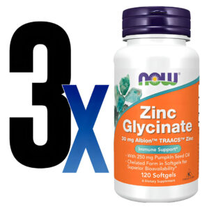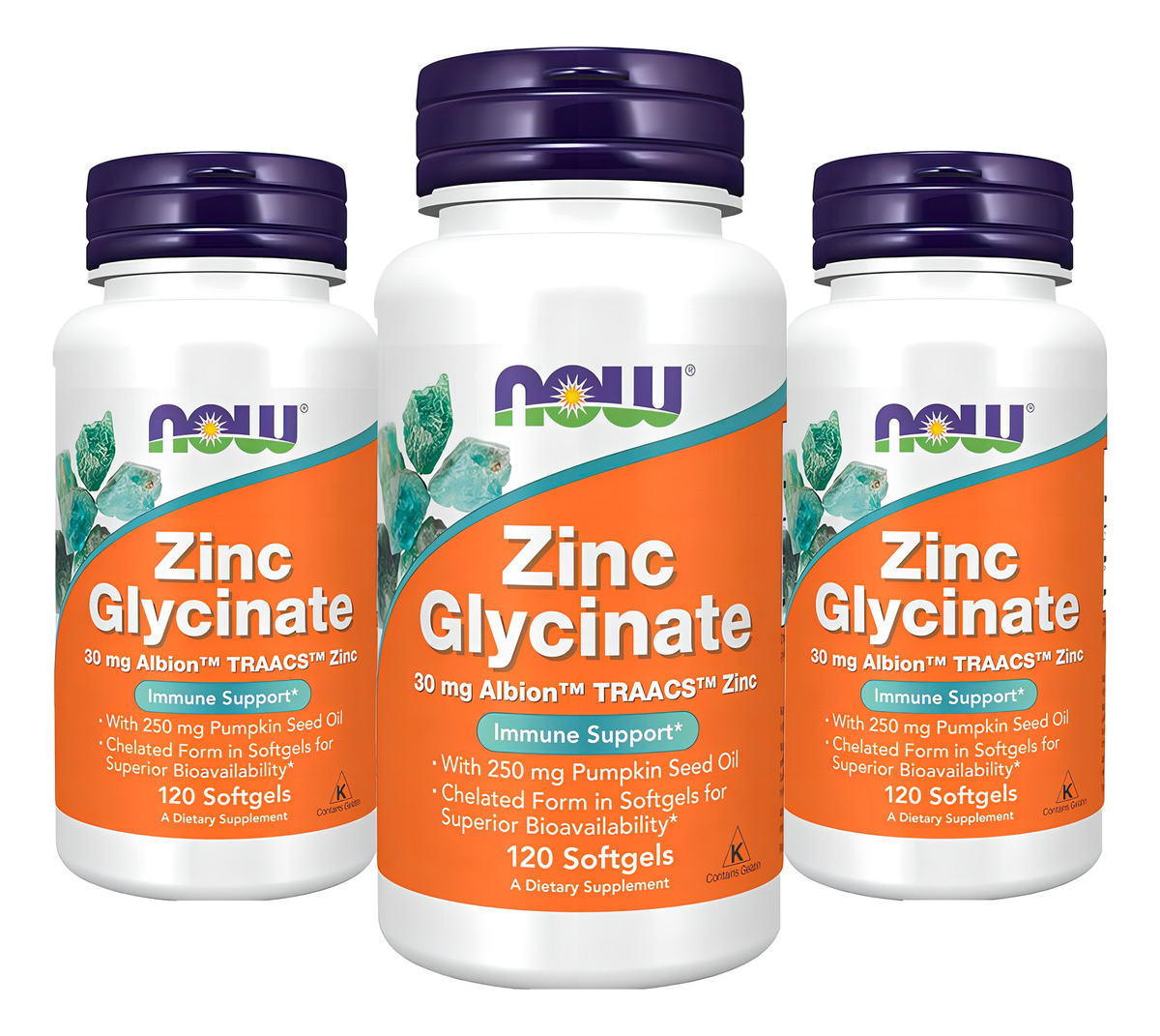 Glicinato de Zinco 30mg Now Foods Zinc Glycinate 120 Softgels Suporte Natural Metabolismo – Importado