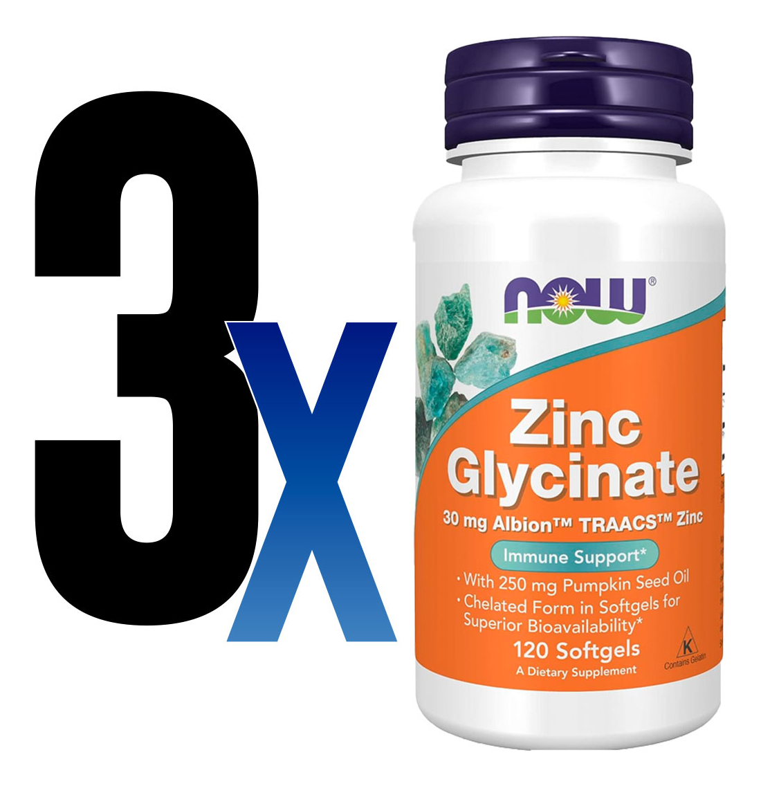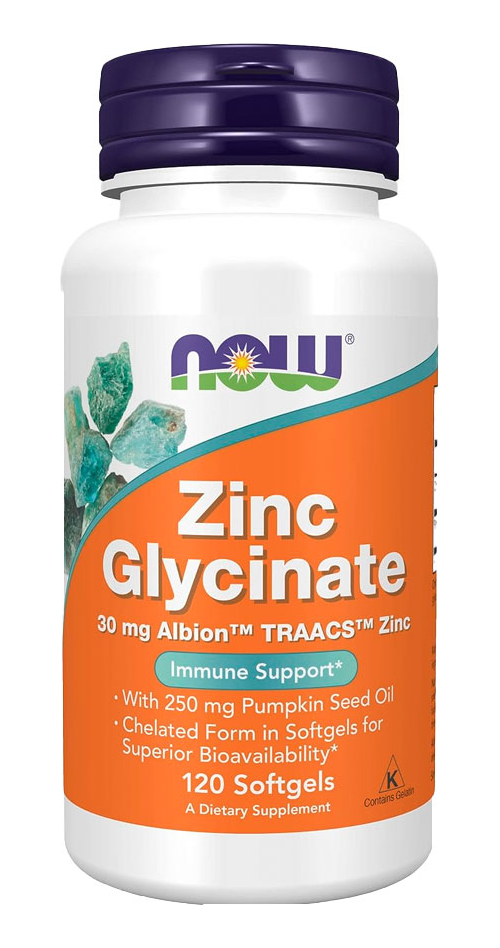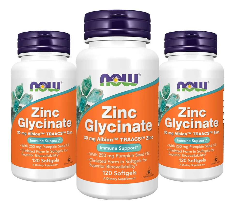 Glicinato de Zinco 30mg Now Foods Zinc Glycinate 120 Softgels Suporte Natural Metabolismo – Importado