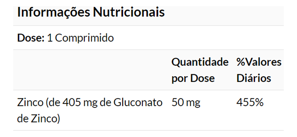 Gluconato de Zinco 50mg 100 Tablets Produto Importado Original