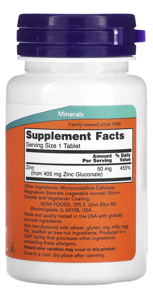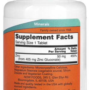 Gluconato de Zinco 50mg Now Foods 100 Tabs – No Brasil