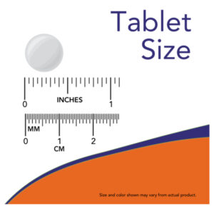O frasco contém 100 tabletes, proporcionando um suprimento substancial se tomado conforme as instruções. A embalagem possui uma tampa de rosca para manter a frescura e proteger o produto.