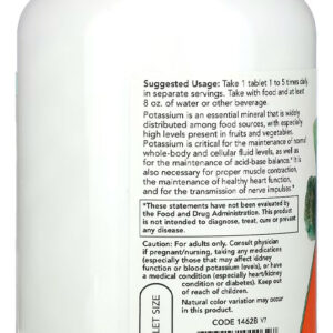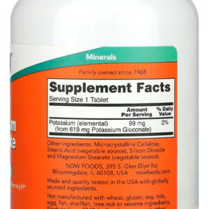 1. Suporte Nutricional Importante: O Gluconato de Potássio 99mg da Now Foods oferece um suporte nutricional valioso, contribuindo para a complementação de potássio na dieta. Este mineral é fundamental para diversas funções corporais, e cada tablet é formulado para fornecer uma quantidade adequada de potássio.