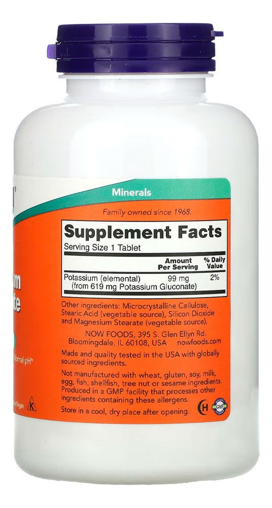 Gluconato Potássio 99mg Now Foods 250 Tabs Importado