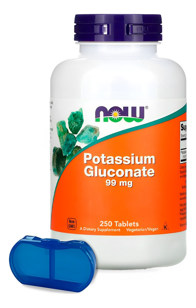 Gluconato Potássio 99mg Now Foods 250 Tabs Importado + Porta Cápsulas