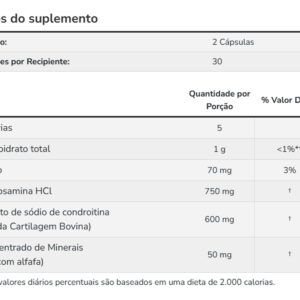 Este suplemento é desenvolvido para atender às necessidades de quem busca uma opção prática e funcional. A combinação de glucosamina e condroitina é amplamente reconhecida por suas propriedades naturais, sendo ideal para complementar o dia a dia.