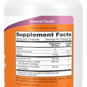 1 g carbohidratos, 400 mg concentrado de minerales traza, 5 kcal calorías, 55 mg sodio, 600 mg sulfato de condroitina sódica, 750 mg clorhidrato de glucosamina