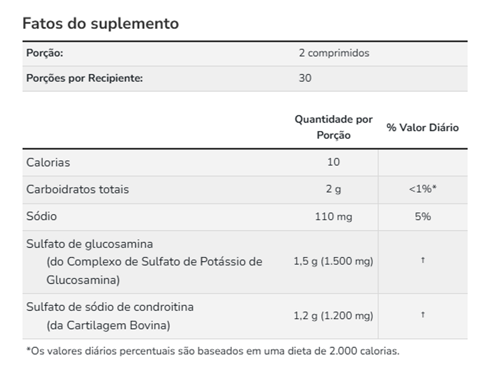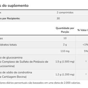 O produto combina a glucosamina e a condroitina em uma fórmula cuidadosamente desenvolvida. Esses elementos foram escolhidos para atender a necessidades específicas, proporcionando suporte abrangente. Validade longa