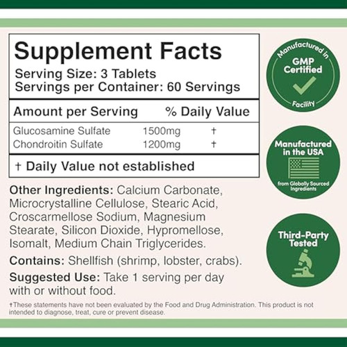 Suplemento de suporte articular: algumas sugestões de pesquisa, a combinação de glucosamina e condroitina em 1500 mg de sulfato de glucosamina e 1200 mg de sulfato de condroitina pode ajudar a apoiar a saúde das articulações, tornando-o uma ótima escolha como suplemento para a saúde das articulações