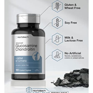 Horbäach Glucosamina Condroitina MSM | Mais açafrão | 180 comprimidos revestidos | Suplemento sem OGM e sem glúten