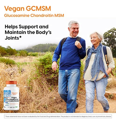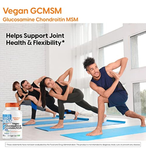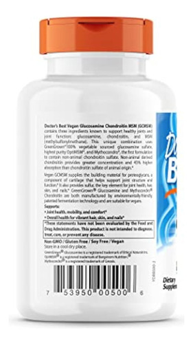 DOCTOR'S BEST Vegan Glucosamina Condroitina MSM GCMSM: Contém três ingredientes conhecidos por ajudar a manter articulações saudáveis e função articular. Esta combinação única usa sulfato de glucosamina 100 vegetal GreenGrown, um metilsulfonilmetano MSM, da OptiMSM de altíssima pureza e Mythocondro, a primeira formulação contendo sulfato de condroitina de origem não animal. O sulfato de condroitina de origem não animal fornece maior concentração e absorção 43 maior do que o sulfato de condroitina de origem animal. *