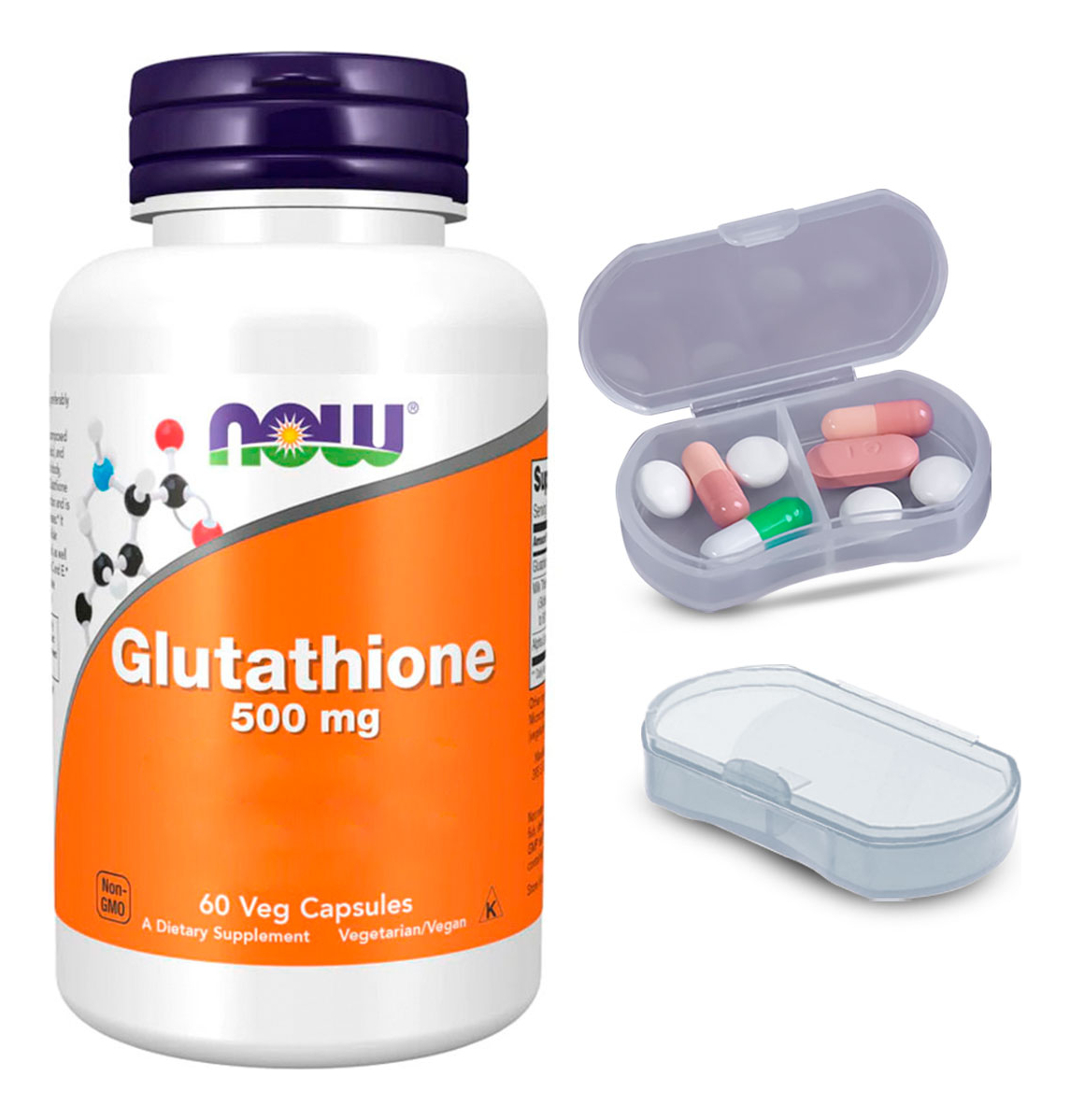 Kit Glutationa 500mg Now Foods 60 Caps + Porta Cápsulas Poderoso Antioxidante Natural: A glutationa é conhecida por seu papel vital como antioxidante, contribuindo para combater os radicais livres e auxiliar na manutenção do bem-estar geral. Este suplemento de 500mg oferece um reforço eficiente para suas necessidades antioxidantes diárias. Conveniência em Cada Cápsula: Apresentado em cápsulas vegetais fáceis de engolir, este suplemento da Now Foods garante uma integração sem esforço na sua rotina diária. Cada cápsula contém uma dose precisa de 500mg, simplificando seu uso diário. Qualidade Importada com Disponibilidade Imediata: Orgulhosamente importado, este produto oferece a garantia de qualidade internacional. Disponível para pronta entrega, você pode começar a integrar os Destaques da glutationa em sua rotina sem demora. Porta Cápsulas com Duas Repartições: O kit também inclui um porta-cápsulas prático, dividido em duas seções internas. Isso permite uma organização eficaz e separada de diferentes tipos de cápsulas ou pílulas. Composição Beneficial para o Bem-Estar: Além de seu papel primário como antioxidante, a glutationa é reconhecida por apoiar várias funções corporais. Sua composição única ajuda a promover uma sensação de vitalidade e bem-estar, sem o uso de ingredientes artificiais ou aditivos prejudiciais. VALIDADE LONGA