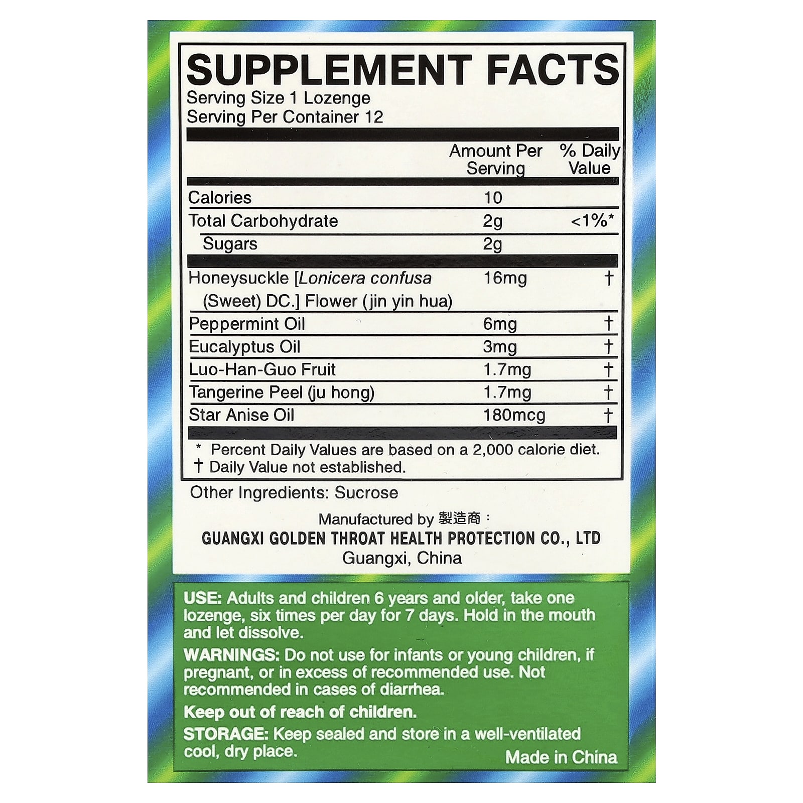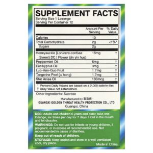 Golden Throat Pastilha 12 Pastilhas – Golden Throat Banho e Cuidados Pessoais Armário do Banheiro Pastilhas para garganta inflamada e tosse Suplementos Ervas Fórmulas de Ervas.