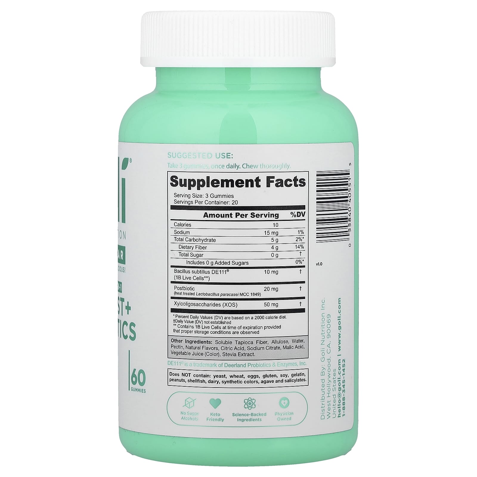 Você sabia que aproximadamente 70% do sistema imunológico humano é encontrado no intestino? Então, quando se trata de sua saúde intestinal, a Goli® simplificou para você dar todo o cuidado e atenção possível. Diga oi para as Primeiras Gomas Pré e Pós-Probióticos 3 em 1 do Mundo, agora com Zero Açúcar! Se você está se perguntando o que tudo isso significa, nós facilitamos a digestão: os prebióticos fornecem combustível para os probióticos, que ajudam a manter a saúde digestiva. Os pós-bióticos são estirpes bacterianas estáveis que oferecem suporte imunológico. Os três juntos em uma deliciosa goma sem açúcar pela primeira vez? Essa é uma ação ousada que merece ser comemorada!
