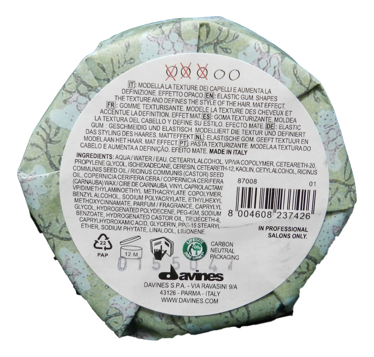 Davines Esta é uma goma de acabamento de fixação média, sem resíduos, leve e funcional para um estilo texturizado e elegante, 2,69 onças – Fixação média – Aperfeiçoa a aparência final – Cria estilos estruturados. O Grupo Davines não testa nossos produtos em animais