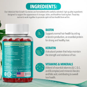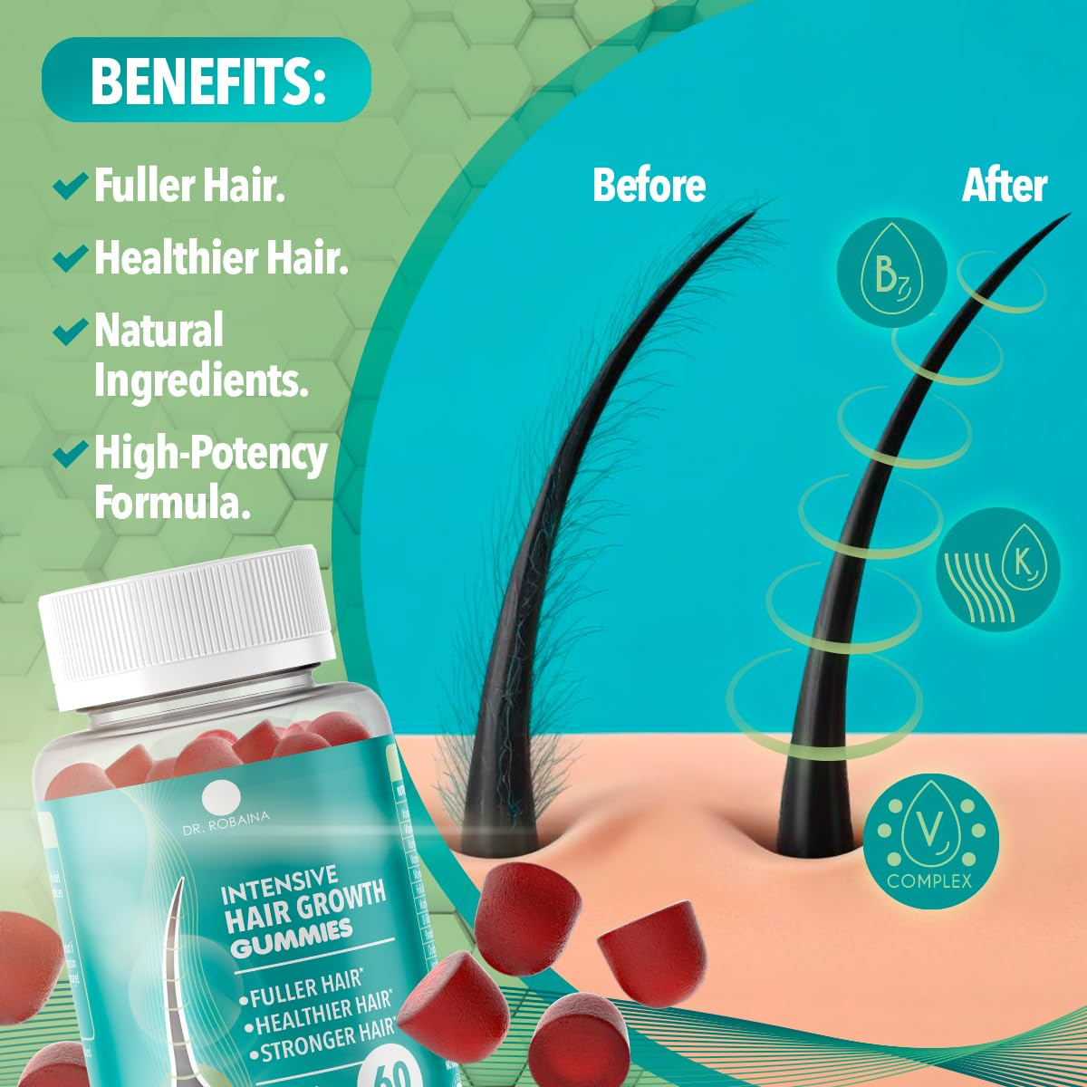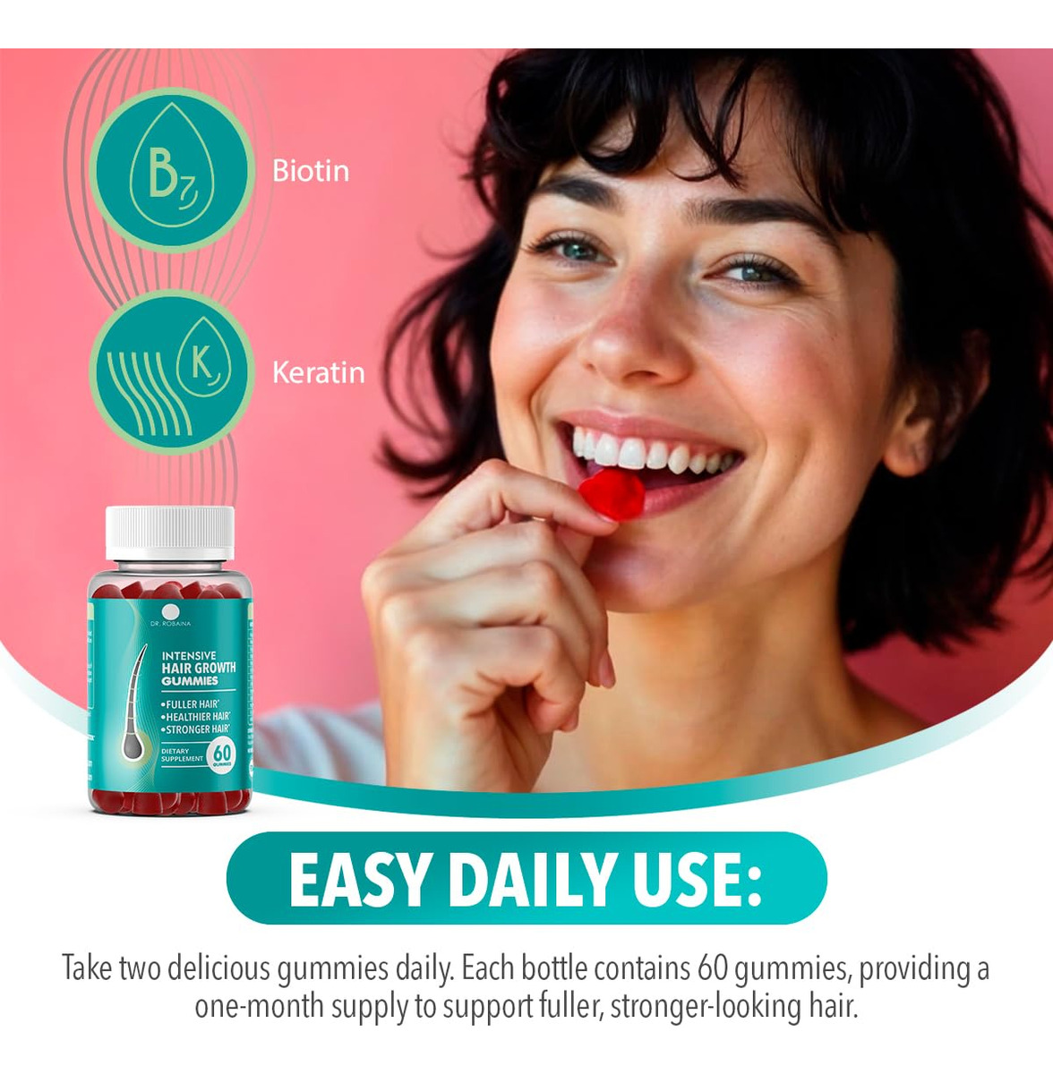 Apresentando o Dr. Robaina's Intensive Hair Growth Gummies, um suplemento premium de crescimento capilar desenvolvido para fornecer cabelos mais fortes, cheios e saudáveis. Formuladas pela renomada especialista em cuidados com os cabelos, Dra. Robaina, essas gomas fáceis de mastigar são repletas de vitaminas e minerais essenciais para nutrir o cabelo de dentro para fora. Principais benefícios: Cabelos mais fortes: fortificados com nutrientes essenciais, essas gomas ajudam a reduzir a quebra do cabelo, promovendo fios mais fortes e resistentes. Cabelo mais cheio: o uso regular aumenta o volume e a espessura do cabelo, proporcionando o cabelo mais cheio que você deseja. Cabelos mais saudáveis: ricas em vitaminas e minerais essenciais, essas gomas nutrem o couro cabeludo e os folículos capilares, contribuindo para a saúde geral do cabelo. Ingredientes principais: Biotina: essencial para o crescimento do cabelo, a biotina ajuda a melhorar a força e elasticidade do cabelo, reduzindo a quebra e as pontas duplas. Queratina: uma proteína vital para a estrutura do cabelo, a queratina melhora a suavidade e o brilho do cabelo, ao mesmo tempo que fornece suporte estrutural. Vitaminas e minerais: incluindo as vitaminas A, C, D, E e do complexo B, juntamente com minerais como zinco e ácido fólico, esses nutrientes apoiam o crescimento e a manutenção saudáveis dos cabelos. Ingredientes naturais: Feitas com sabores naturais e sem conservantes artificiais, essas gomas oferecem uma solução segura e eficaz para o crescimento do cabelo. Experiência do Dr. Robaina: O Dr. Robaina, um dos principais especialistas em cuidado e crescimento capilar, traz anos de pesquisa e experiência clínica para a formulação dessas gomas. Seu compromisso de usar ingredientes naturais de alta qualidade garante que cada goma ofereça os melhores benefícios para a saúde do cabelo. Instruções de uso: Ingestão diária: tome duas gomas por dia, de preferência com uma refeição, para aproveitar todos os benefícios das gomas de crescimento capilar intensivo do Dr. Robaina. Consistência é fundamental: para obter melhores resultados, incorpore essas gomas em sua rotina diária de forma consistente ao longo de vários meses. Armazenamento: Armazene em local fresco e seco, longe da luz solar direta, para manter a eficácia e o sabor das gomas. Experimente a transformação: com as gomas intensivas de crescimento capilar do Dr. Robaina, você pode obter o cabelo mais forte, cheio e saudável que sempre quis. Apoiadas pela experiência da Dra. Robaina e formuladas com ingredientes de alta potência, essas gomas são a solução ideal para o crescimento ideal do cabelo. Embrace a jornada para um cabelo bonito com um suplemento que é tão delicioso quanto eficaz. – Cabelos mais fortes: formuladas para fortalecer o cabelo, essas gomas ajudam a reduzir a quebra e promover fios de cabelo mais fortes e saudáveis da raiz às pontas. – Cabelos mais cheios: experimente cabelos visivelmente mais cheios com o uso regular, pois essas gomas aumentam o volume e a espessura do cabelo. – Vitaminas e minerais: repletos de vitaminas e minerais essenciais, incluindo biotina e queratina, até nutra seu cabelo e couro cabeludo para uma saúde ideal do cabelo. – Gomas fáceis de mastigar: aproveite as deliciosas, gomas fáceis de mastigar que tornam a ingestão diária de seu suplemento capilar uma experiência deliciosa. – Ingredientes naturais: feitas com ingredientes naturais, sem sabores e conservantes artificiais, garantindo uma solução segura e eficaz para o crescimento capilar da Dra. Robaina.