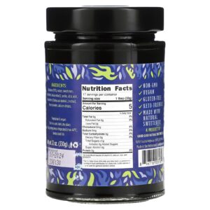 Mirtilo (57%), água, adoçantes (eritritol, extrato de estévia), pectina, ácido cítrico, extrato de sorva (Sorbus aucuparia L.), limão em pó, citratos de cálcio.