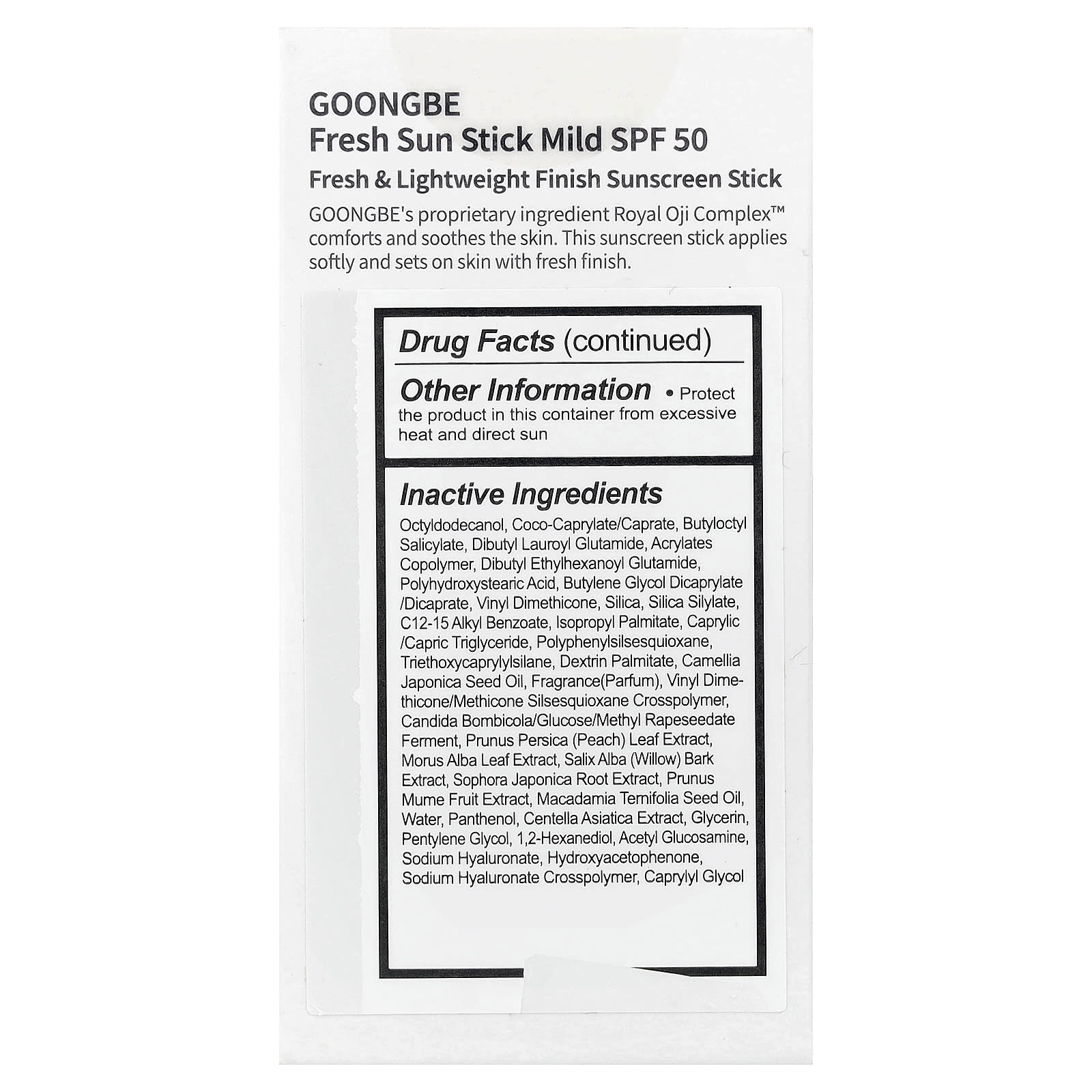 Goongbe Protetor Solar Fresh Sun Bastão Suave FPS 50 23 g (081 oz) – Goongbe Cuidados Pessoais Protetor Solar Protetor Solar K-Beauty.