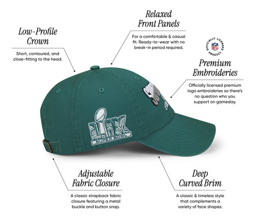 Boné casual masculino FOCO Philadelphia Eagles NFL Super Bowl LIX Champions com logotipo primário, cor do time — licenciado oficialmente pela National Football League (NFL) — O design autêntico e clássico de qualidade combina com o estilo fácil com o boné casual FOCO. Enviado com um bordado oficial do logotipo da NFL e o logotipo da marca bordado plano no lado esquerdo, este boné representa a promessa da FOCO de materiais de alta qualidade e conforto incomparável. – Ajuste descontraído e confortável Se você está procurando o boné de beisebol perfeito da NFL ou um chapéu descontraído para pai, o chapéu FocoS Casual é perfeito para o uso diário. A coroa baixa e não estruturada permite um ajuste confortável em sua cabeça. Quando não é usada, a coroa fica quase plana para facilitar o armazenamento dia após dia. – MATERIAIS DE QUALIDADE E LAVAGEM DE ROUPAS Feita de sarja de algodão lavada à roupa, a tampa de limpeza clássica de baixo perfil oferece maior flexibilidade e maciez. Com o tempo, seu boné desenvolverá uma aparência vintage naturalmente usada. – FECHO AJUSTÁVEL Um fecho traseiro fácil de usar permite que você personalize o boné de acordo com sua preferência. Basta aumentar ou diminuir o comprimento da alça ajustável e fechar o botão para um ajuste seguro.