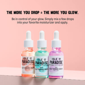Gotas autobronzeadoras Isle of Paradise, leves (Sunkissed Glow) — Gotas autobronzeadoras veganas e sem crueldade, 1,01 fl oz — THE LOWDOWN | As gotas autobronzeadoras Isle of Paradise para rosto e corpo podem ser misturadas com seu hidratante favorito para um brilho personalizado. – HIDRATANTE | Infundido com ingredientes naturais que adoram a pele, como óleos de toranja, semente de chia e abacate para hidratar, bronzeado uniforme e duradouro, sem estrias, manchas ou cheiros. – ILUMINADOR | As gotas autobronzeadoras leves da Isle of Paradise são formuladas com ativos corretores da cor pêssego para iluminar a pele e dar a luz perfeita e brilho bronzeado. – PERSONALIZÁVEL | Bronzeamento 100% personalizável que você controla: 3 gotas = 6 gotas radiantes = 9 gotas bronzeadas = 12 gotas douradas = bronze. – PARA USAR | Adicione 2 a 12 gotas a um mínimo de 2 ml (colher de chá) do seu hidratante favorito, misture e aplique na pele. Não adicione mais de 12 gotas ao hidratante. Lave as mãos após a aplicação. Seu brilho se desenvolverá em 4-6 horas.