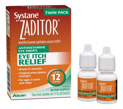 As gotas Zaditor Eye Itch Relief proporcionam um alívio eficaz para coceira nos olhos devido a alergias. Esta formulação de colírio sem receita contém cetotifeno, que é um anti-histamínico que impede a liberação de substâncias no corpo que causam sintomas alérgicos. Essas gotas oferecem alívio duradouro e começam a funcionar em minutos para aliviar a irritação e a vermelhidão nos olhos. Adequados para uso por adultos e crianças, eles são uma escolha confiável para controlar o desconforto ocular relacionado à alergia.