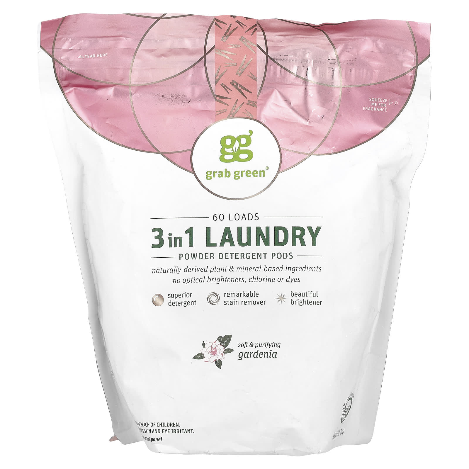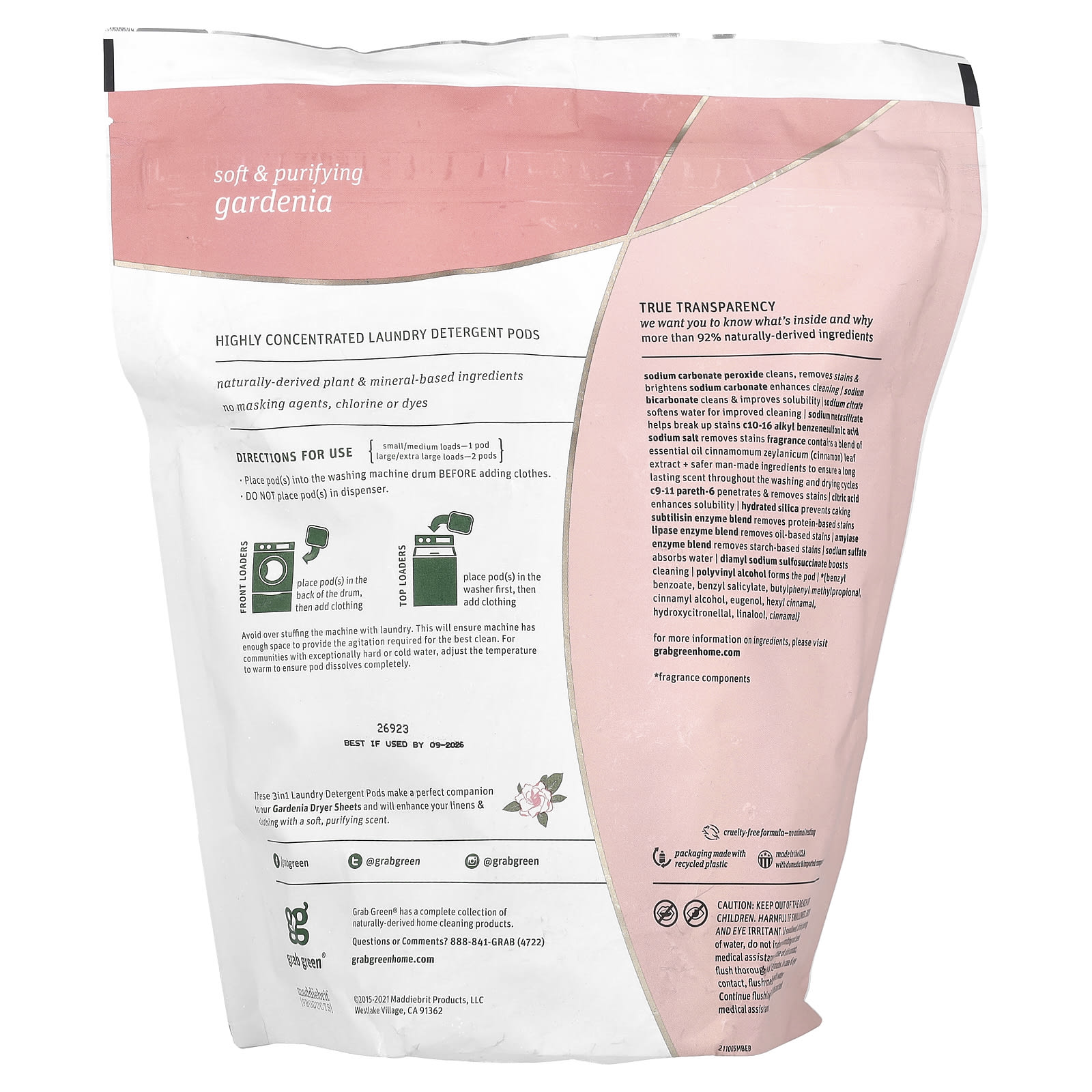 Grab Green 3 em 1 Sachês de Detergente em Pó para Roupas Gardenia 60 Lavagens 960 g (2 lbs 2 oz) – Grab Green Casa Limpeza Produtos para lavanderia Detergentes.