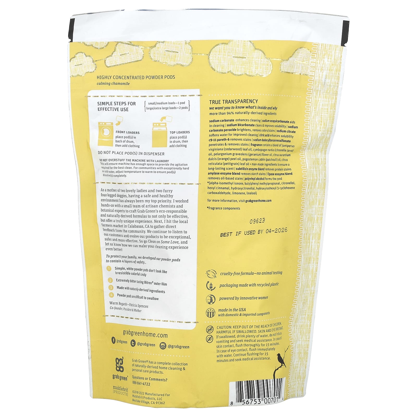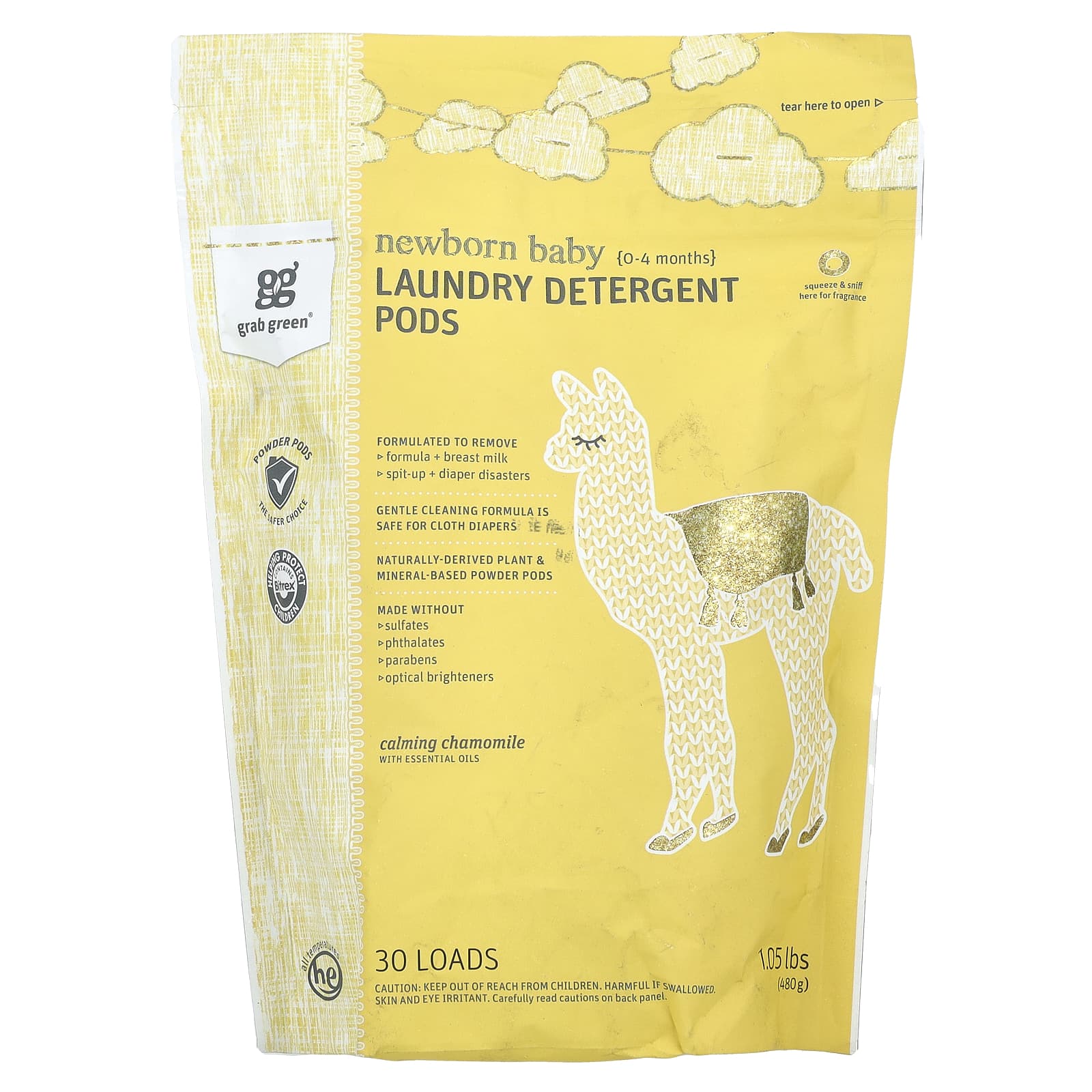 Grab Green Cápsulas de Detergente para Lavar roupa Bebê Recém-nascido 0 a 4 Meses Camomila Calmante com Óleos Essenciais 30 cargas 480 g (105 lbs) – Grab Green Bebês e Crianças Casa Detergente para bebê.