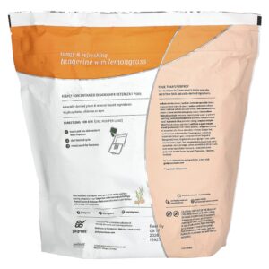 Grab Green Cápsulas de Sabão para Lava-Louça Automática Tangerina com Capim Limão 132 lavadas 5 libras 4 onças (2376 kg) – Grab Green Casa Limpeza Produtos para lavar louça Sabão para Louças e Lava-Louças.