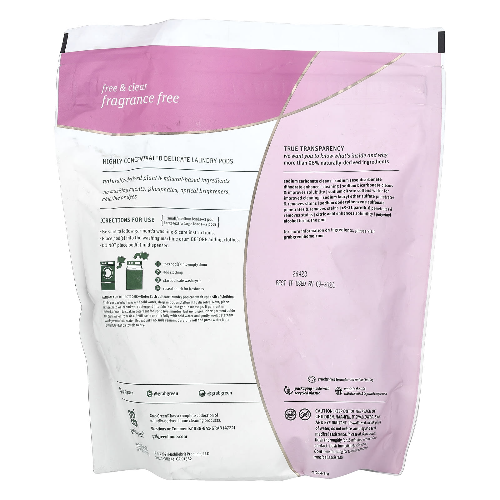 Grab Green Delicate Lavagem em Sachês de Detergente em Pó Sem Perfume 60 Lavagens 600 g (1 lb 4 oz) – Grab Green Casa Limpeza Produtos para lavanderia Detergentes.