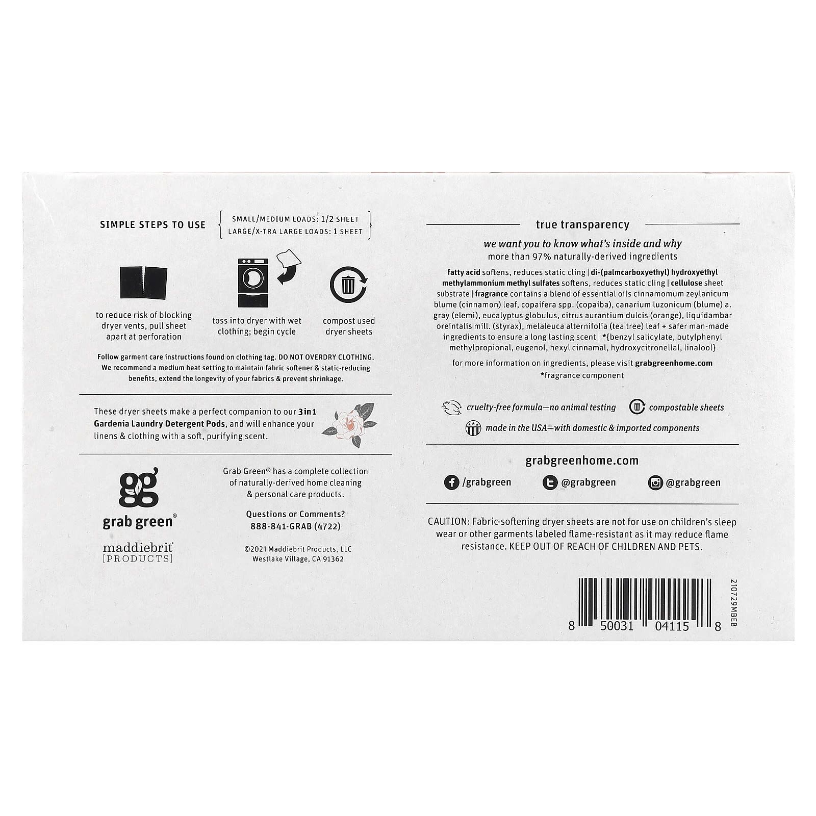 Grab Green Folhas Secantes Gardenia 80 Folhas Compostáveis – Grab Green Casa Limpeza Produtos para lavanderia Amaciantes de Roupas e Lenços para Secadora.