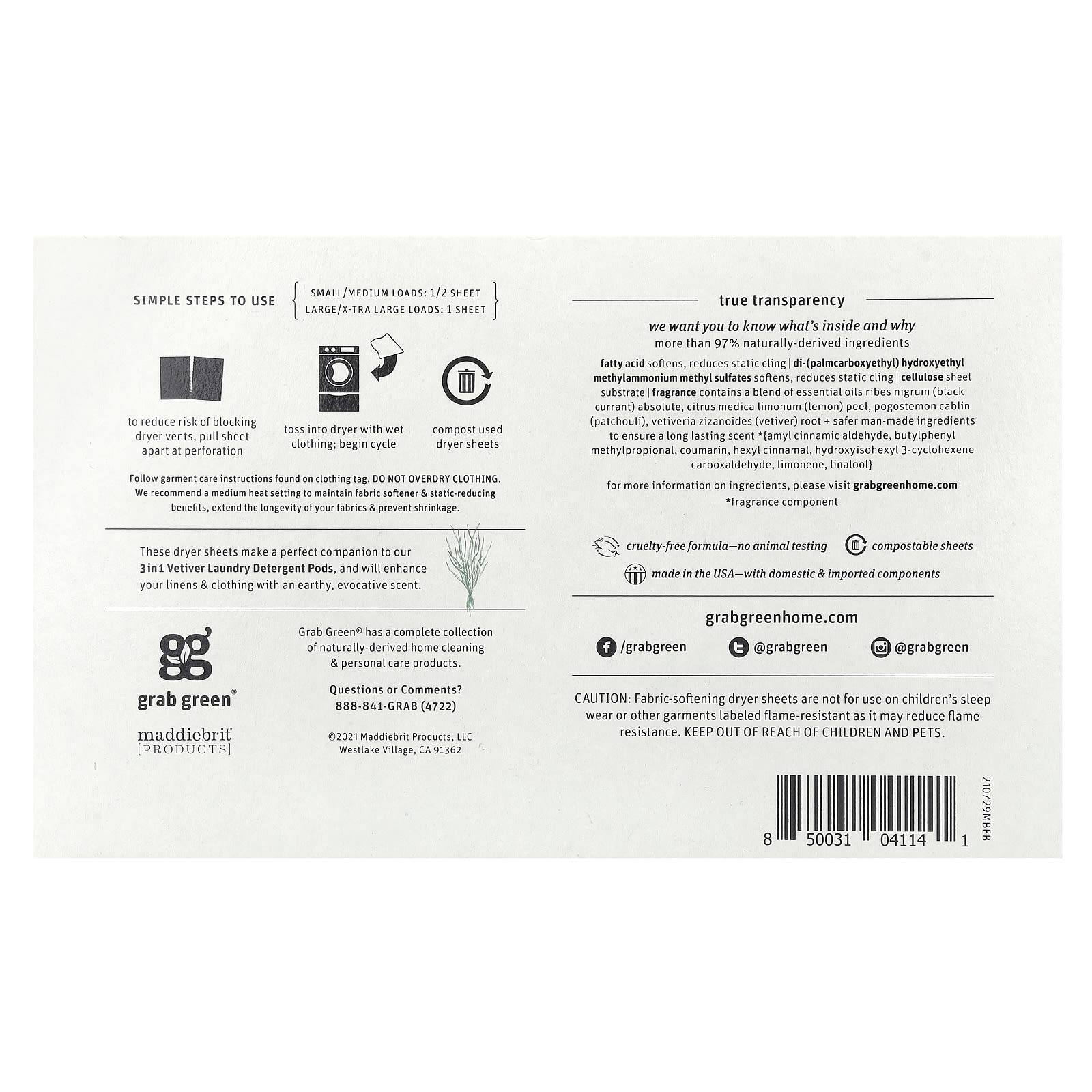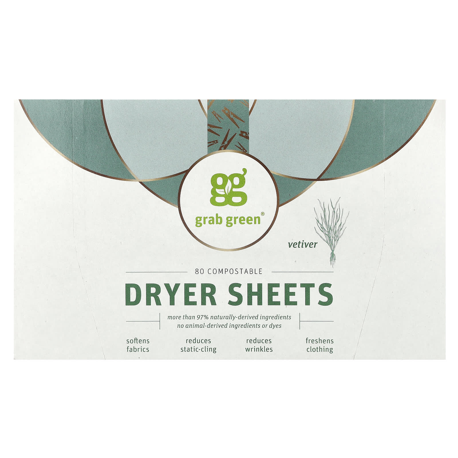 Grab Green Folhas Secantes Vetiver 80 Folhas Compostáveis – Grab Green Casa Limpeza Produtos para lavanderia Amaciantes de Roupas e Lenços para Secadora.