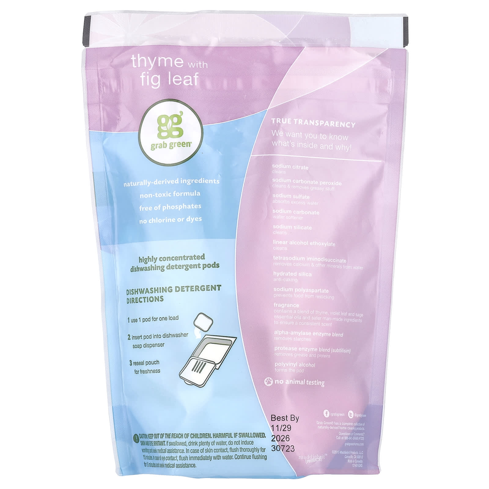 Grab Green Para Lava-Louças Automática Sachês de Detergente Tomilho com Folha de Figo 24 Cargas 432 g (152 oz) – Grab Green Casa Limpeza Produtos para lavar louça Sabão para Louças e Lava-Louças.