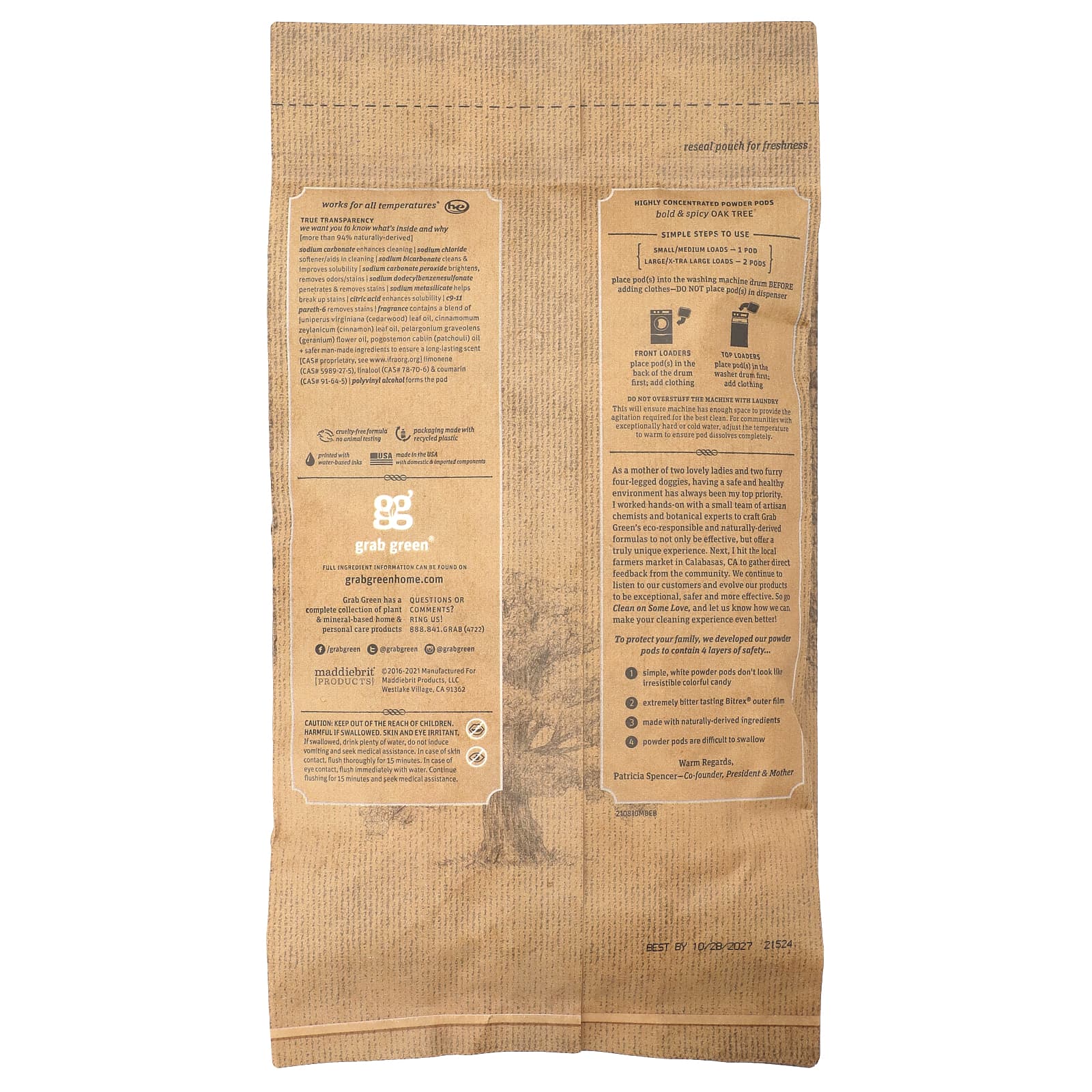 Grab Green Stoneworks® Sachês de Detergente para Lavar Roupas Carvalho 50 Lavagens 750 g (165 lb) – Grab Green Casa Limpeza Produtos para lavanderia Sabão para roupas.