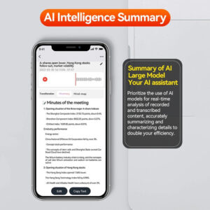 A transcrição avançada com IA utiliza inteligência artificial de ponta para converter com precisão a fala em texto em tempo real. Essa função garante alta precisão e suporta múltiplos idiomas e dialetos. O gravador inteligente reduz significativamente o tempo e o esforço da transcrição manual, sendo ideal para profissionais que precisam registrar reuniões, conferências e entrevistas de forma eficiente e confiável.