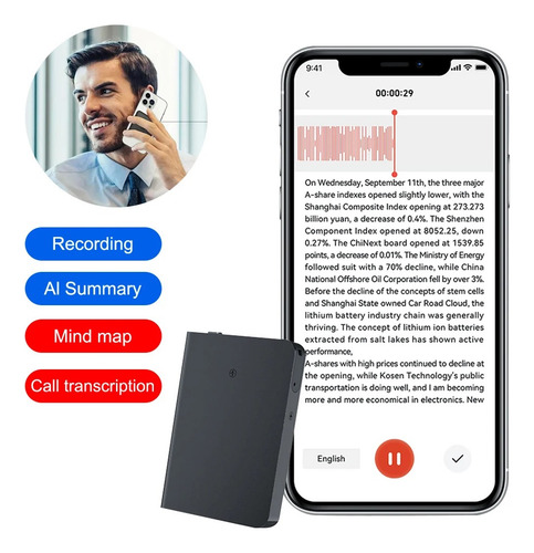 Mini grabadora de voz alimentada por IA, unidad Flash Usb, Control por aplicación, llamada telefónica, dictáfono, transcripción, traductor summarizado Mp3 |