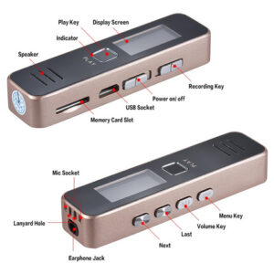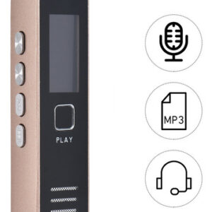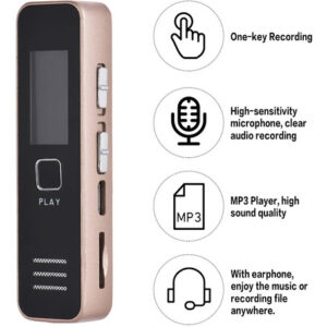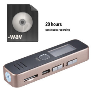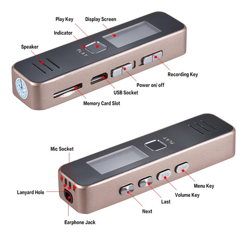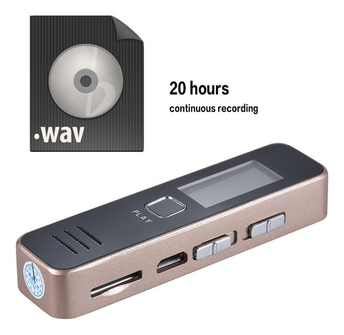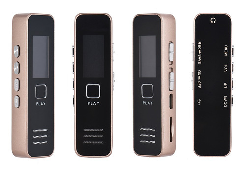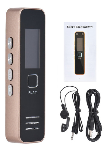 Características: Gravador de voz digital e leitor de música com som de alta qualidade.Gravação de um toque de alta eficiência para entrevistas de aula palestras etc.Microfone embutido de alto grau permite gravar conversas detalhadas.Built-in bateria de lítio recarregável oferece até 20hrs de gravação contínua (totalmente carregado) .Suporta cartão de memória 8GB/16GB/32GB (não incluído) .Corpo pequeno fácil de transportar e esconder.Especificações:Cor: ouroMaterial: MetalGravação Formato: WavMusic Formato: WAVPlayback Formatos: WAV MP3Fonte de alimentação: Bateria de iões de lítio Tempo de gravação: 20 horas (totalmente carregado) Porta USB: USB 2.0Resposta de frequência USB: 20Hz-20 Hz-20KHZTemperatura de trabalho: 0 ~ 40CCom alto-falantes: SimBalanced Out: SimCapacidade: Sem capacidade (suporta cartão de 8 GB/16 GB/32 GB TF) Sistema compatível: Windows XP Window Vista Windows 7 Windows 8 Tamanho do item: 7 * 1.8 * 1.1cm/ 2.7 * 0.7 * 0.4emPeso do item: 34g/1.2 ozNota: Este gravador de voz digital precisa trabalhar com uma memória cartão (não incluído). Suporta cartão TF de 8 GB/16 GB/32 GB. Lista de pacote:1 * Gravador de voz1 * Earphone1 * Cabo de carregamento1 * Manual do usuário (Inglês)