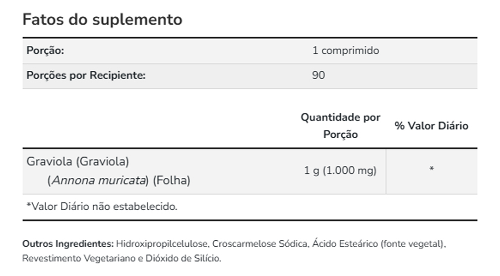 Formulado com Graviola como ingrediente principal, o produto mantém uma composição cuidadosamente elaborada. Cada tablete foi projetado para oferecer praticidade e funcionalidade no uso diário. Validade longa