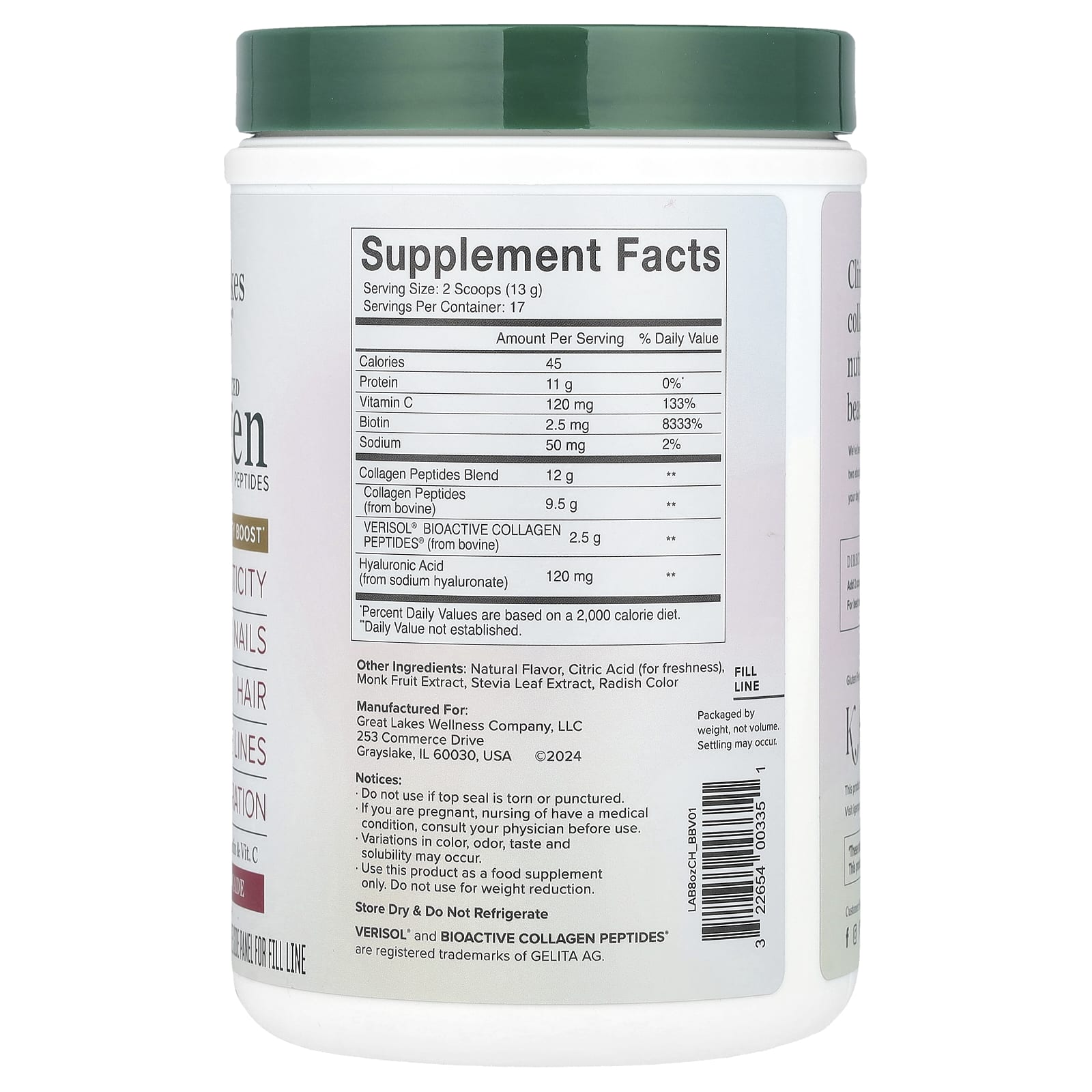 Great Lakes Wellness Peptídeos de Colágeno Avançado Limonada de Framboesa 227 g (8 oz) – Great Lakes Wellness Suplementos Ossos, Articulações e Cartilagem Colágeno, Suplementos.