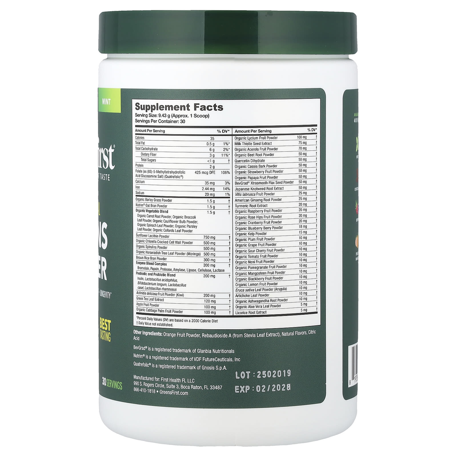 Greens First Verduras em Pó Menta 2829 g (997 oz) – Greens First Suplementos Superalimentos Superalimentos Verdes Misturas de Verduras Misturas de Superfrutas.