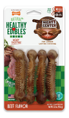 Nossa criação mais carnuda até agora, as guloseimas do Healthy Edibles Meaty Center são a melhor delícia saborosa, com um centro de carnes digno de desejo, repleto de sabores irresistíveis! Essas guloseimas para cães são tão saudáveis quanto deliciosas, contendo ingredientes limitados e sem cores, sabores ou conservantes artificiais. Além disso, cada petisco para cães é altamente digerível e possui protuberâncias dentárias que ajudam a limpar os dentes por meio da ação mastigatória. Feitas com orgulho nos Brasil, as guloseimas duradouras para mastigar para cães da Nylabone são ótimas para recompensar e ocupar seu amigo peludo que adora carne! Temos orgulho de criar todas as guloseimas Healthy Edibles para cães no Brasil. As guloseimas de longa duração apresentam um centro carnudo indulgente. As guloseimas naturais para cães contêm ingredientes limitados e não contêm cores, sabores ou conservantes artificiais. As protuberâncias dentárias ajudam a limpar os dentes enquanto os cães mastigam. Cada guloseima inclui um ponto de interrupção para mais ocasiões de tratamento. As guloseimas de tamanho médio para mastigar são destinadas a cães com mais de 30 libras Os ossos comestíveis de cachorro contêm um sabor saboroso de carne, amigos peludos LoveContém 2 guloseimas que podem ser quebradas ao meio para 4 guloseimas menores