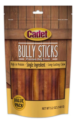 Confiável há mais de 30 anos, Cadet oferece guloseimas e mastigáveis naturalmente deliciosos para cães, feitos com ingredientes premium de origem responsável. Feito com um quebra-cabeça de carne bovina 100% real, o Cadet Bully Sticks satisfaz o desejo inato dos cães de mastigar. Cada delicioso palito de valentão é assado lentamente para realçar o sabor natural que seu amigo de quatro patas deseja e proporcionar uma diversão duradoura. Feitos com apenas um único ingrediente, esses mastigáveis totalmente naturais para cães não contêm cores, sabores ou enchimentos artificiais. Eles também são naturalmente ricos em proteínas e pobres em gordura, o que os torna uma recompensa saudável que seu cão vai adorar e que você não se sentirá culpado por dar. Além disso, esses mastigáveis ajudam a limpar os dentes por meio da ação mecânica de mastigação. Ofereça ao seu melhor amigo uma aventura de mastigação satisfatória com Cadet Bully Sticks para cães! ALTO TEOR DE PROTEÍNA Os palitos Dog Bully são ricos em proteínas, baixos em gordura e não contêm cores, sabores ou enchimentos artificiais. Duram muito. Os mastigadores para cães ocupados oferecem ao seu melhor amigo um tempo de mastigação de qualidade que o mantém ocupado e satisfeito. Inspecionado nos Brasil. Feito de pizza de carne bovina 100% real, proveniente do gado da melhor qualidade e assado lentamente para dar um sabor irresistível. Inspecionado nos Brasil Palitos de carne bovina 100% real, proveniente do gado da melhor qualidade e assados lentamente para dar um sabor irresistível. Inspecionado nos Brasil são inspecionados para garantir que atendam aos padrões de alta qualidade da Cadet. Apoia a saúde bucal de cães – Os mastigadores de carne bovina para cães ajudam a limpar dentes e gengivas por meio da mastigação natural dos cães Action Highly DIGERÍVEL Palitos de quebra-cabeça de carne bovina natural para cães são digeridos com facilidade e segurança. Tamanho: o pacote econômico contém 5,2 onças de palitos para agressores