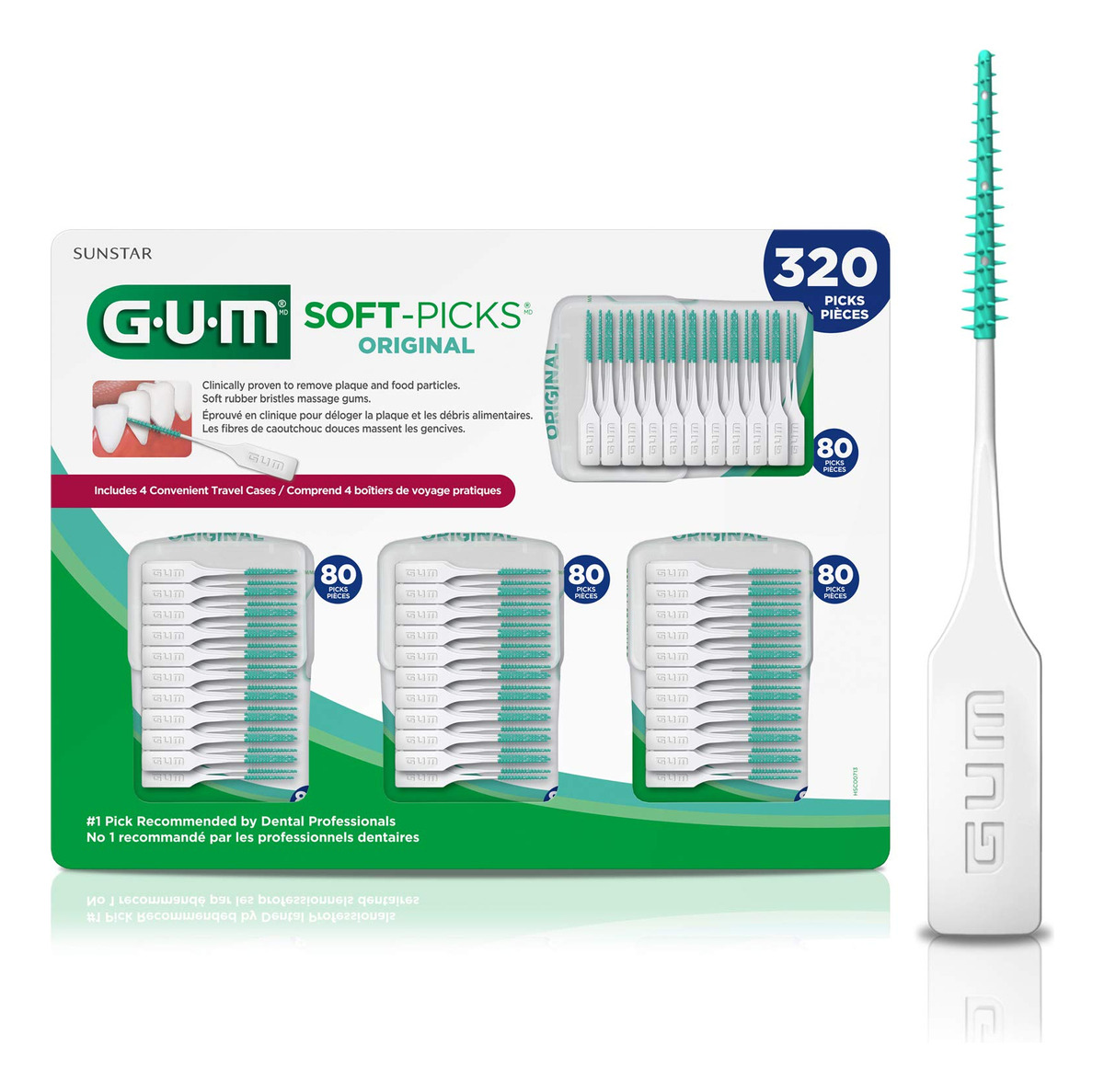 GUM – Palhetas dentais originais 6324A Soft-Picks, 320 unidades – FÁCEIS E EFICAZES: dê a si mesmo algo para sorrir com o GUM Soft Picks Original. Nossos palitos descartáveis têm cerdas macias que deslizam facilmente entre os dentes para remover a placa bacteriana e os alimentos, proporcionando gengivas mais saudáveis, dentes mais limpos e hálito mais fresco. – Palitos macios originais: alternativa perfeita ao uso do fio dental. Eles são particularmente úteis para limpar entre os dentes da frente e são uma ótima opção se você tiver pequenos espaços interdentais, aparelhos ortodônticos, pontes ou aparelhos ortodônticos. – RECOMENDADO PELO DENTISTA: Nossos palitos de fio dental são projetados clinicamente por especialistas em odontologia. Tanto dentistas quanto higienistas dentais os recomendam fortemente como uma forma segura e eficaz de remover a placa bacteriana de áreas de difícil acesso. – Ótimo para qualquer lugar: cada conjunto de palitos dentais vem em um estojo de plástico conveniente que pode ser facilmente transportado em sua carteira, carro ou bolsa para um sorriso confiante onde quer que você vá. – SAUDÁVEL COMEÇA AQUI: A pesquisa continua mostrando a conexão entre saúde bucal e saúde geral. A marca GUM está comprometida em fornecer produtos de cuidado inovadores para pessoas de todas as idades, a fim de alcançar uma vida mais saudável possível.