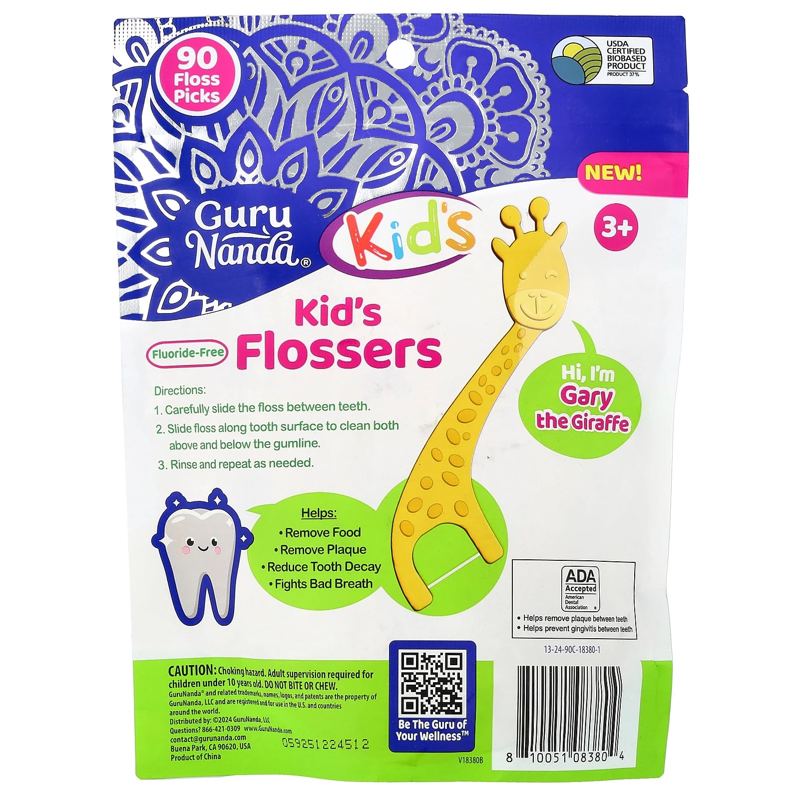 GuruNanda Fios Dentais para Crianças Acima de 3 Anos Frutos Silvestres Mistos 90 Unidades – GuruNanda Bebês e Crianças Higiene Bucal Cuidados Pessoais Fio dental.