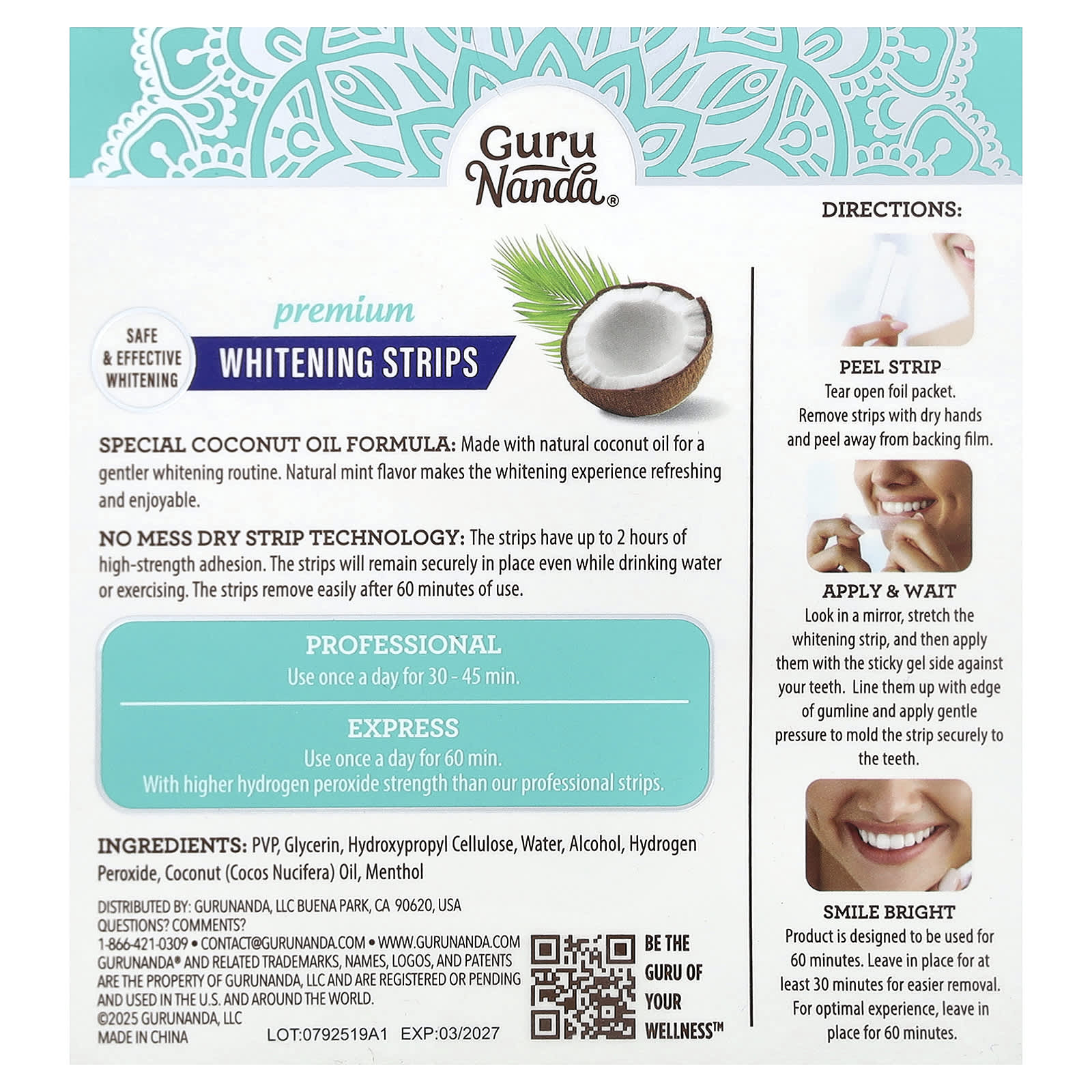 GuruNanda Tiras para Clareamento Premium 14 Tiras – GuruNanda Cuidados Pessoais Higiene Bucal Tiras Clareadoras para os Dentes Acessórios de cuidados orais.