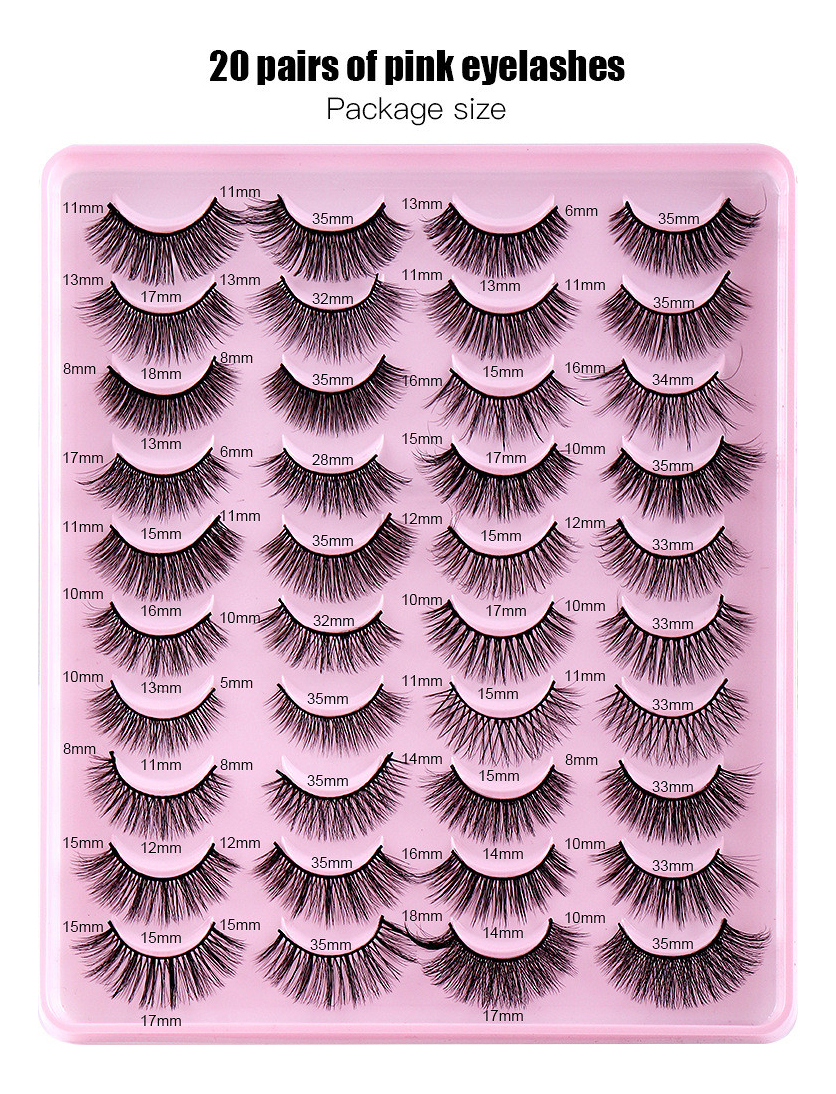 20 Pairs Of Mixed Natural Dense Fake EyelashesSimulated Chemical Fiber EyelashesMessy And Slender Eyelashes |