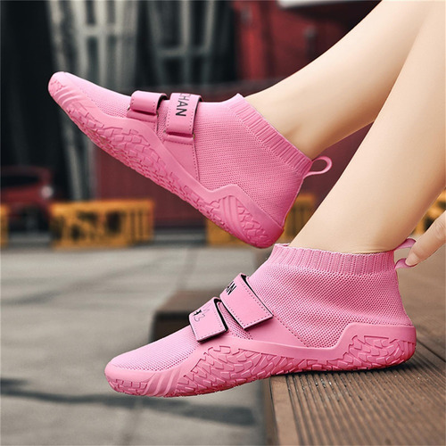Material do corpo do sapato: parte superior em malha respirável, ajuste descalço, boca elástica do sapato, design autoadesivo duplo, elasticidade ajustável e pressuriza o pé, forte tensão.