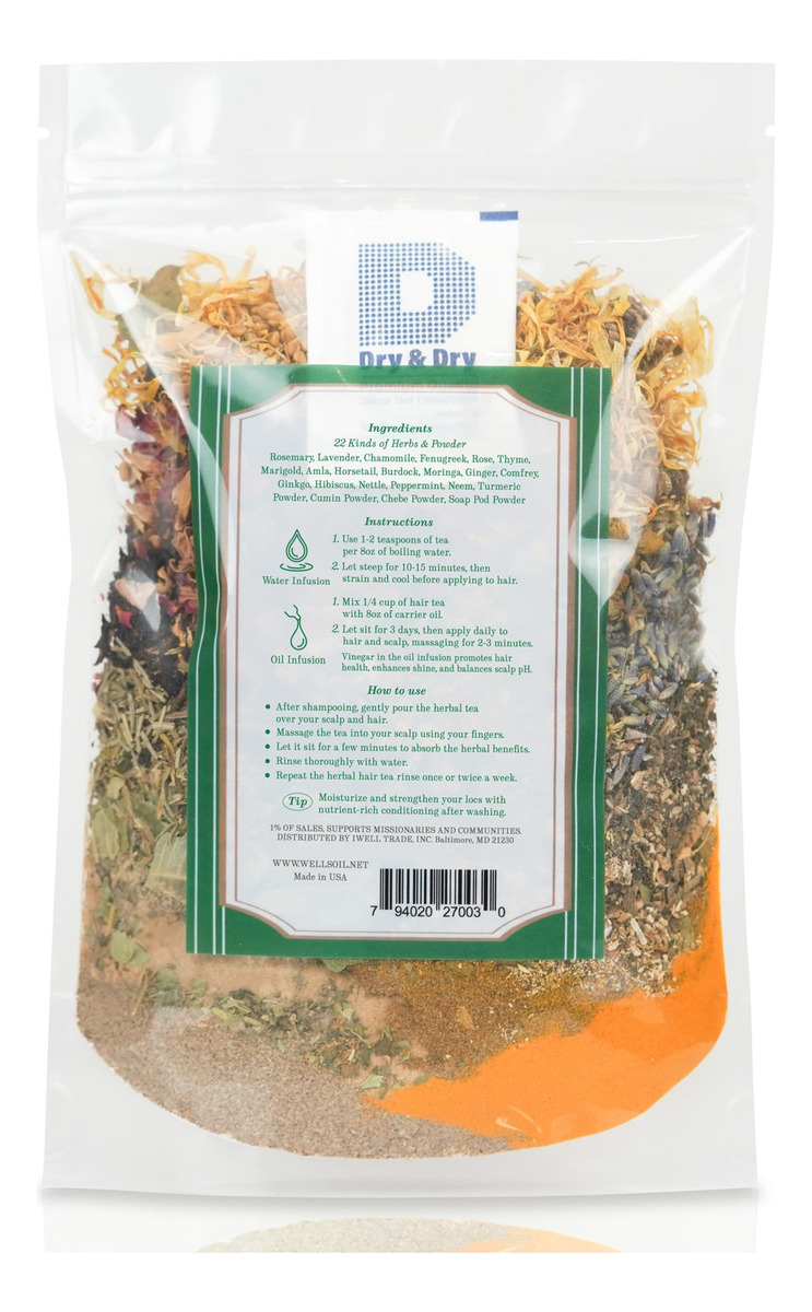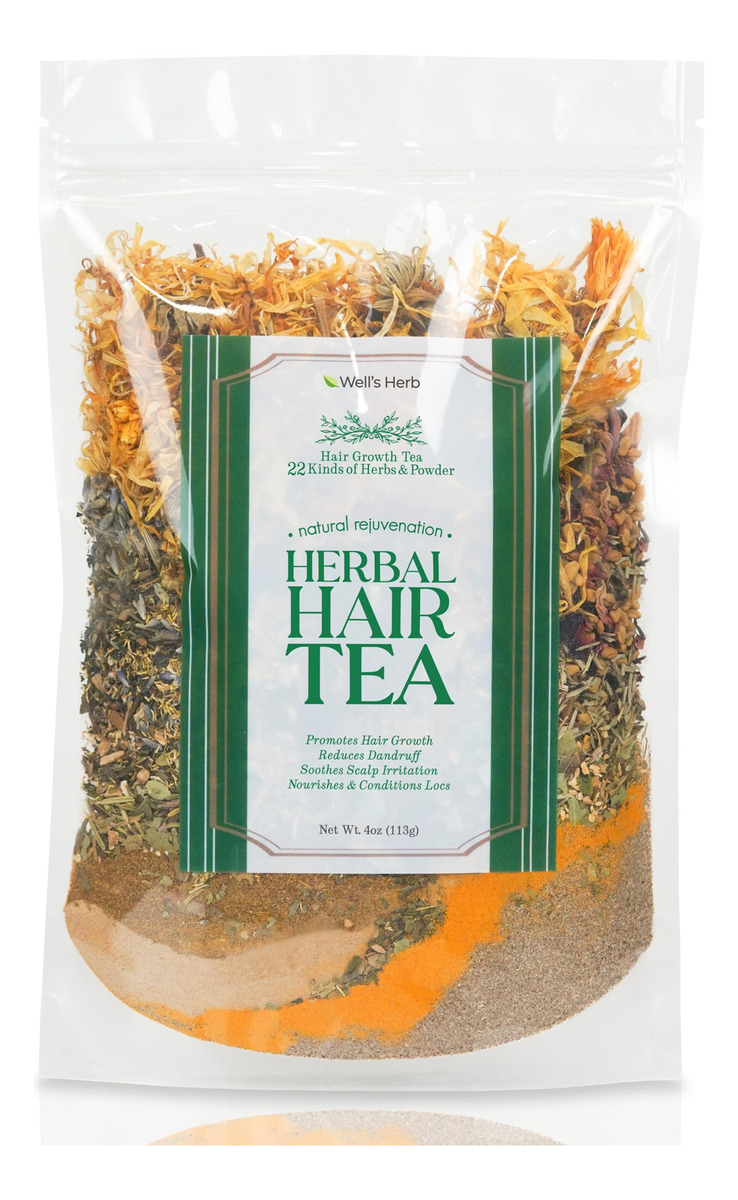 Apresentando o chá de ervas para cabelo Well's Herb 22 Kinds – uma solução natural e revitalizante para nutrir seu cabelo e promover um crescimento saudável! Experimente o poder da natureza com nossa mistura exclusiva de 22 ingredientes fitoterápicos escolhidos a dedo, cuidadosamente selecionados para fornecer nutrientes essenciais ao cabelo e apoiar seu bem-estar geral. O chá de ervas Well's Herb não é apenas mais um produto para o cuidado do cabelo; é uma experiência holística que traz a bondade da natureza diretamente para o couro cabeludo. – Condicionador de cabelo de salão para crescimento luxuoso do cabelo e rejuvenescimento natural: experimente os efeitos rejuvenescedores de nossa mistura de ervas, pois revitaliza o cabelo da raiz às pontas. – Para enxágue com chá de cabelo: use 1 a 2 colheres de chá de chá por 8 onças de água fervente. Deixe em infusão por 10 a 15 minutos, depois coe e esfrie antes de aplicar no cabelo – Para óleo de cabelo: misture 1/4 de xícara de chá com 8 onças de óleo transportador (óleo de coco ou jojoba). Deixe descansar por alguns dias e aplique diariamente no cabelo e no couro cabeludo, massageando por 2 a 3 minutos. – Como usar: Após a lavagem, despeje suavemente o chá de ervas sobre o couro cabeludo e o cabelo. Massageie o chá no couro cabeludo. Deixe descansar por alguns minutos para absorver os benefícios das ervas. Enxágue com água. Repita o enxágue com chá de ervas para cabelo uma ou duas vezes por semana. – 22 ervas e pó essenciais: mistura notável das melhores ervas da natureza, criada para promover o crescimento do cabelo. Alecrim, lavanda, camomila, feno-grego, rosa, tomilho, calêndula, amla, cavalinha, bardana, moringa, gengibre, confrei, ginkgo, hibisco, urtiga, hortelã, bardana, moringa, gengibre, confrei, ginkgo, hibisco, urtiga, hortelã, bardana, moringa, gengibre, confrei, ginkgo, hibisco, urtiga, pimenta, neem, Açafrão em pó, cominho em pó, Chebe em pó, sabonete em pó