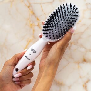 Escova de última geração e mundialmente famosa com cerdas duplas de precisão e pontas de microesferas para desembaraçar o cabelo de forma suave, mas eficaz, ao mesmo tempo que estimula o volume, o brilho e a microcirculação do couro cabeludo para o crescimento saudável do cabelo e a saúde do couro cabeludo.