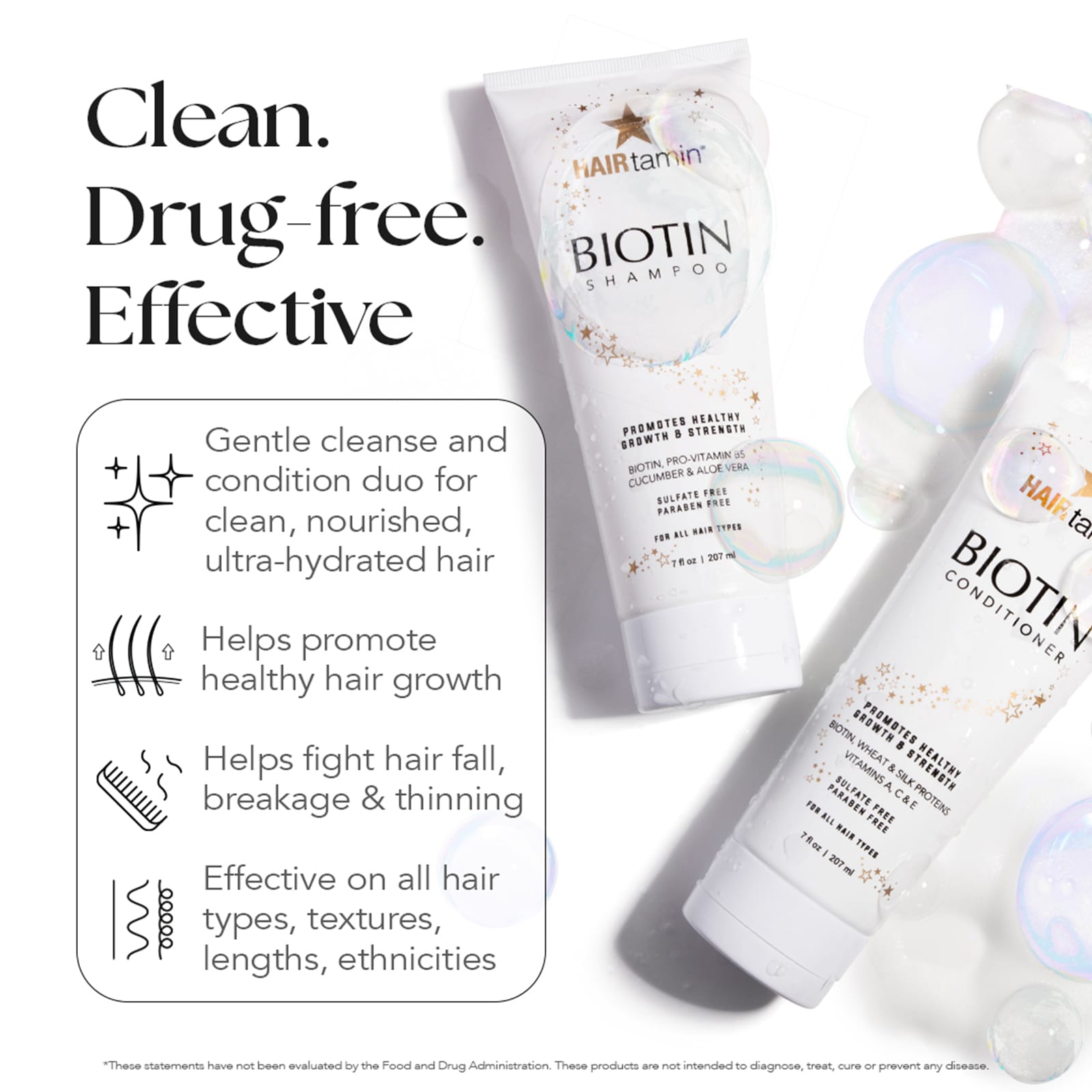 HAIRtamin Shampoo de Biotina Mistura Botânica 207 ml (7 fl oz) – HAIRtamin Cuidados Pessoais Cabelos Shampoo.