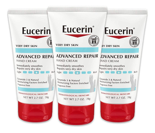 Creme para mãos Eucerin Advanced Repair Sem perfume, loção para mãos para pele muito seca 2,7 onças (pacote com 3)