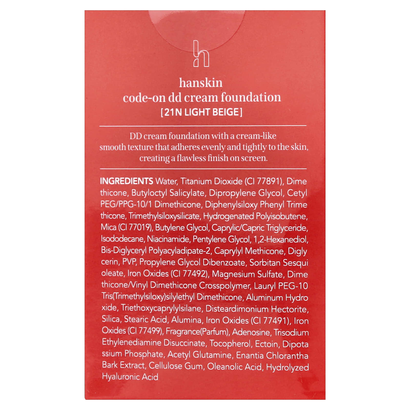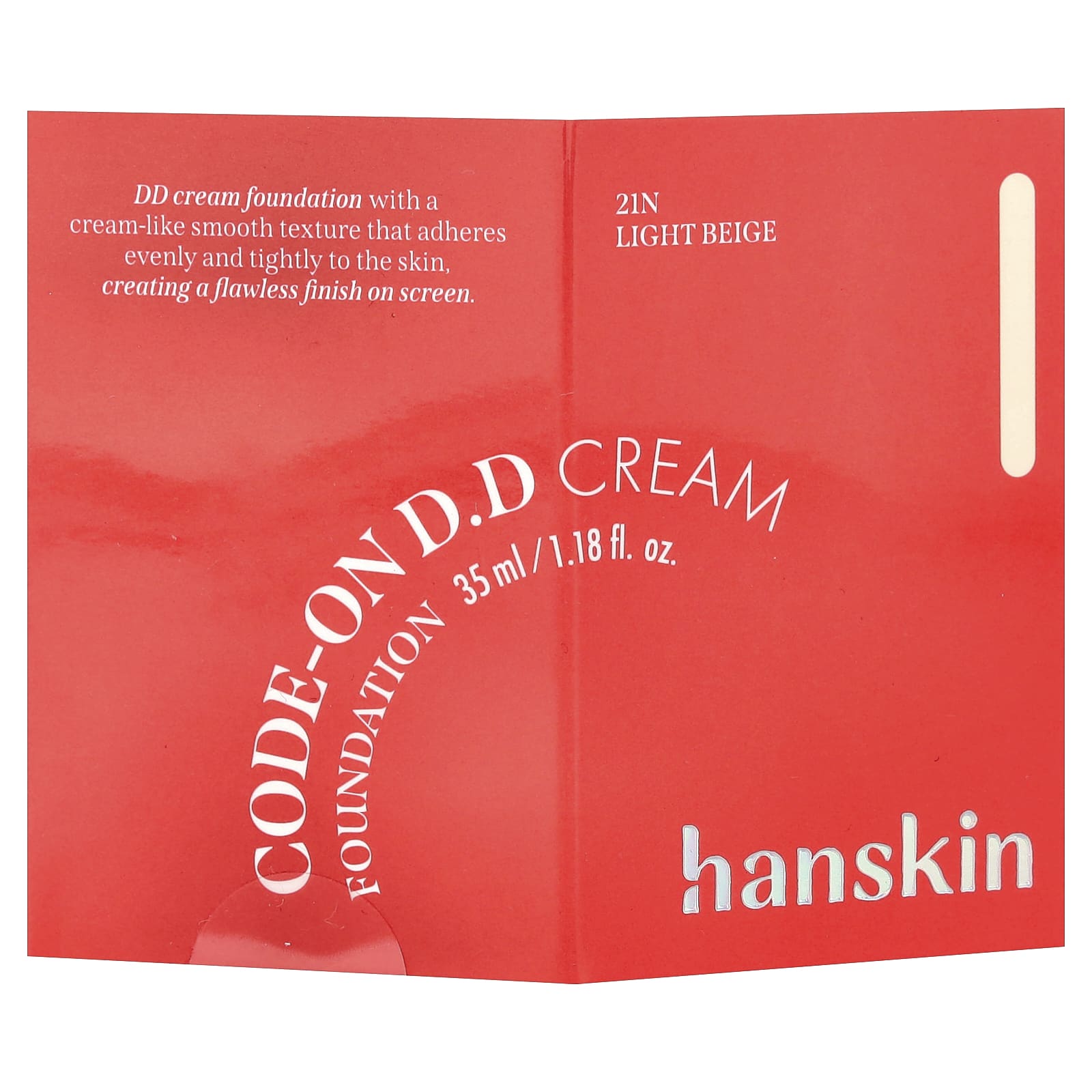 Hanskin Base em Creme DD Code-On 21N Bege Claro 35 ml (118 fl oz) – Hanskin Beleza Maquiagem Rosto Base Bases K-Beauty.